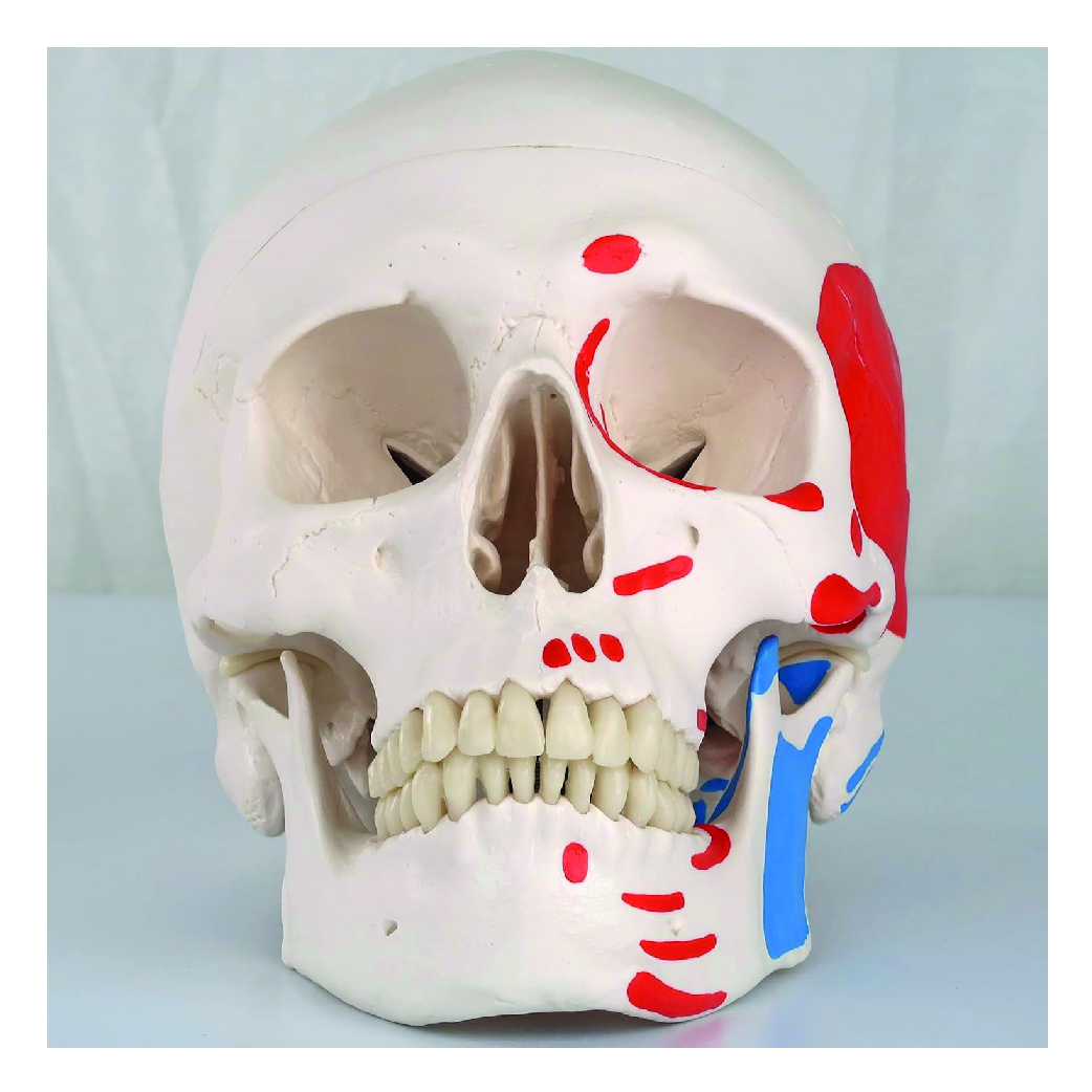 En el lado izquierdo del esqueleto se muestran más de 600 estructuras anatómicas y clínicas importantes