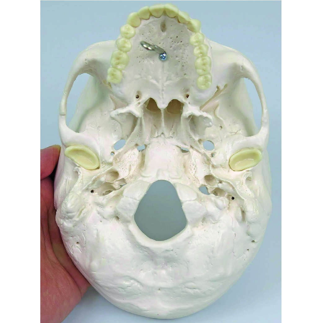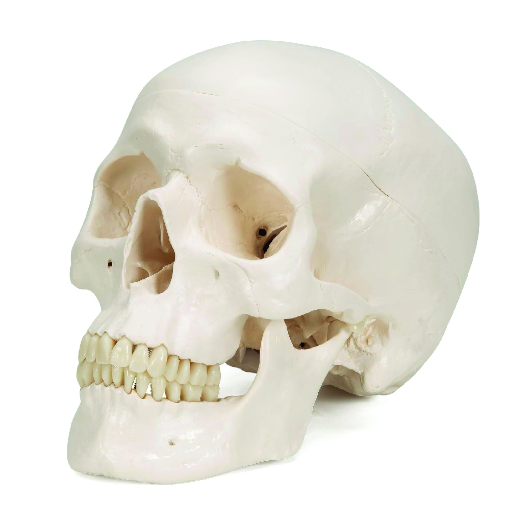 Desmontable en Bóveda del cráneo, Base del cráneo y Mandíbula; cada diente es moldeado individualmente para una dentición realista